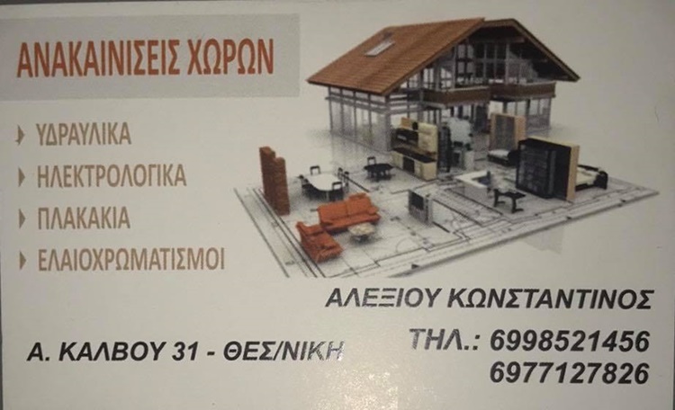 ΑΝΑΚΑΙΝΙΣΕΙΣ ΘΕΣΣΑΛΟΝΙΚΗ | ΑΛΕΞΙΟΥ ΚΩΝΣΤΑΝΤΙΝΟΣ