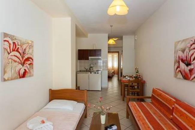 Τα διαμερίσματα παρέχουν όλες εκείνες τις ανέσεις που διασφαλίζουν την ποιότητα στη διαμονή σας και την απόλαυση των διακοπών σας. Επίσης κάθε διαμέρισμα διαθέτει το δικό του μπαλκόνι για τις πιο προσωπικές στιγμές χαλάρωσης.