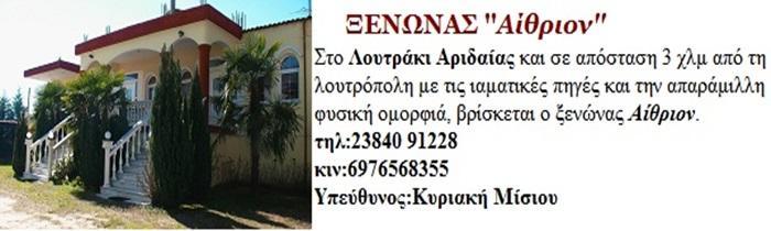 ΕΝΟΙΚΙΑΖΟΜΕΝΑ ΔΩΜΑΤΙΑ | ΛΟΥΤΡΑΚΙ ΑΡΙΔΑΙΑ | ΞΕΝΩΝΑΣ ΑΙΘΡΙΟΝ