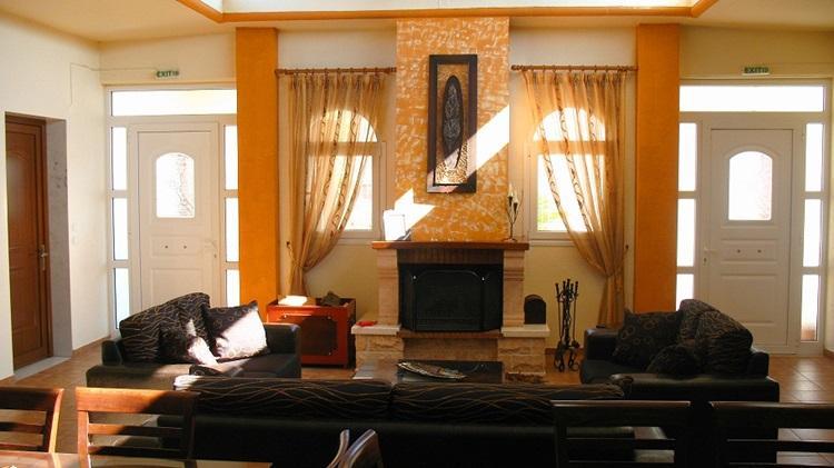 Τα δωμάτια βρίσκονται περιμετρικά ενός ευρύχωρου σαλονιού 80 τμ., το οποίο διαθέτει τζάκι, δύο μεγάλες τραπεζαρίες και βιβλιοθήκη. Επίσης, ο ξενώνας περιβάλλεται από ένα εντυπωσιακά μεγάλο υπαίθριο χώρο με κήπο, ψησταριά και άνετο χώρο στάθμευσης με υπόστεγο.