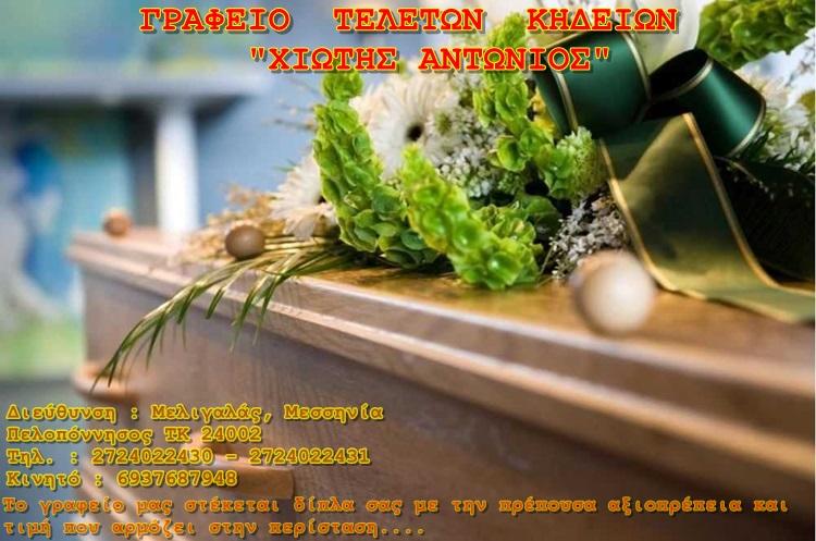 ΓΡΑΦΕΙΟ ΤΕΛΕΤΩΝ ΚΗΔΕΙΩΝ | ΜΕΛΙΓΑΛΑΣ ΜΕΣΣΗΝΙΑΣ ΠΕΛΟΠΟΝΝΗΣΟΣ | ΧΙΩΤΗΣ ΑΝΤΩΝΙΟΣ