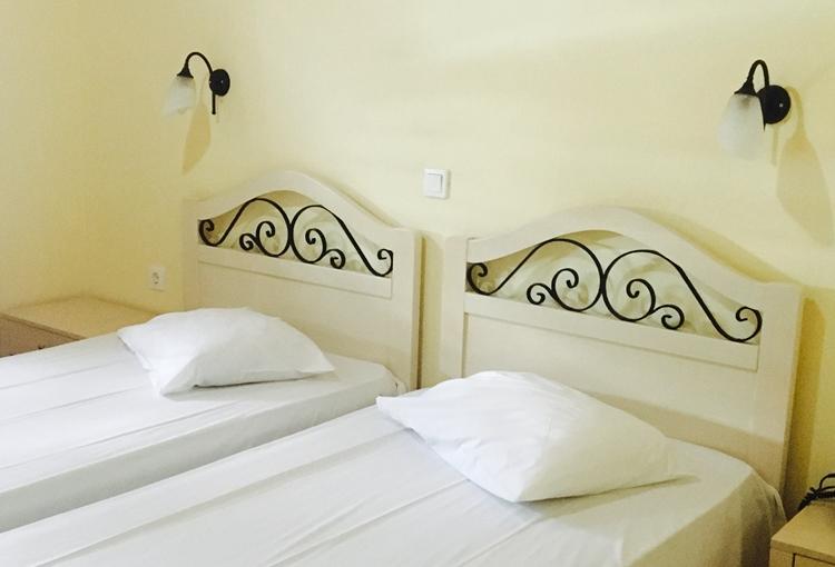 Όλα τα κλιματιζόμενα δωμάτια στο Faros Hotel διαθέτουν τηλεόραση LCD, ψυγείο και στεγνωτήρα μαλλιών. Καθένα περιλαμβάνει μπαλκόνι, ενώ ορισμένα έχουν θέα στο Μυρτώο Πέλαγος.