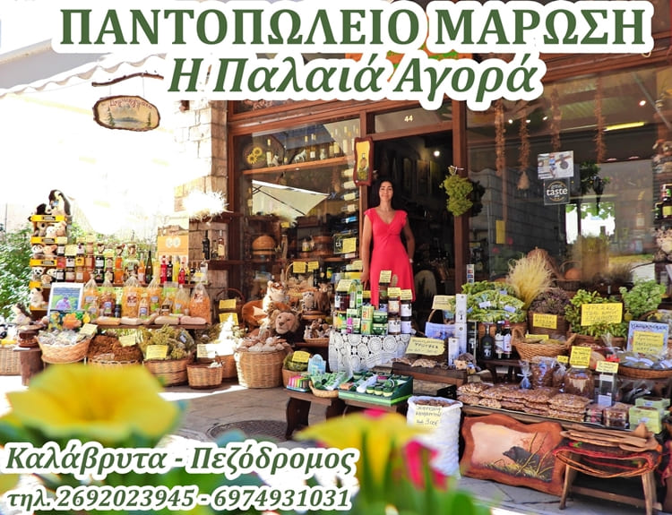 Στο κεντρικό πεζόδρομο των Καλαβρύτων θα βρείτε το παντοπωλείο Μαρώση – “Η παλαιά Αγορά”