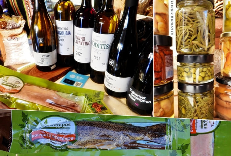 Τα φημισμένα τυροκομικά των Καλαβρύτων, τις καπνιστές πέστροφες από της πηγές του Αροάνιου ποταμού, τα διάσημα αλλαντικά της Μάνης και μια μεγάλη ποικιλία από βιολογικά ελαιόλαδα και ελιές της Πελοποννήσου.
