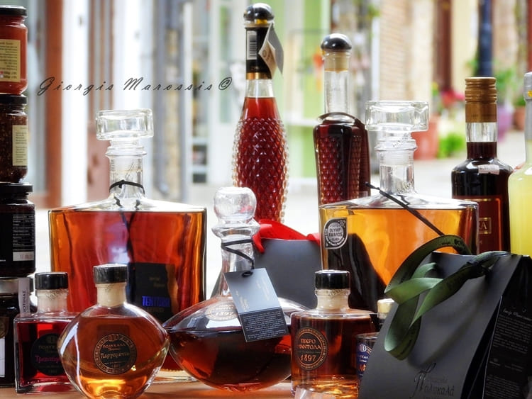 Μεγάλη ποικιλία γλυκών κουταλιού και μαρμελάδων, ηδύποτα, αποστάγματα και εξαιρετικούς οίνους από πολλά οινοποιεία της Αιγιαλείας.
