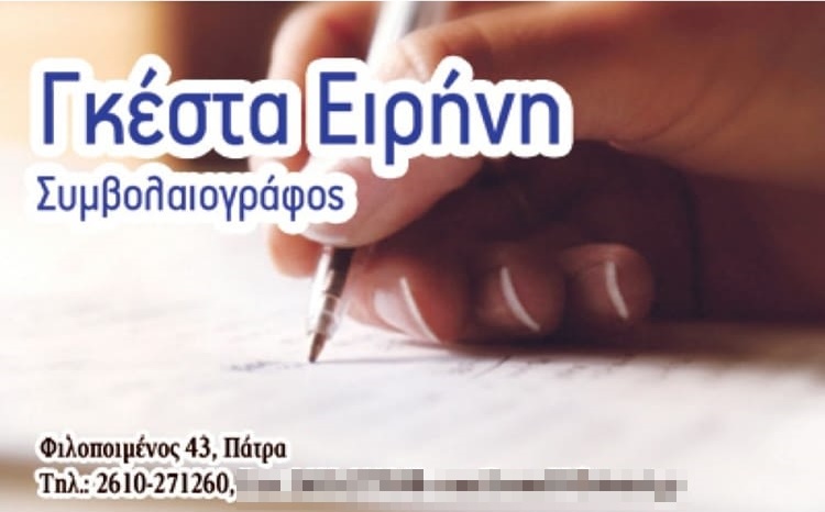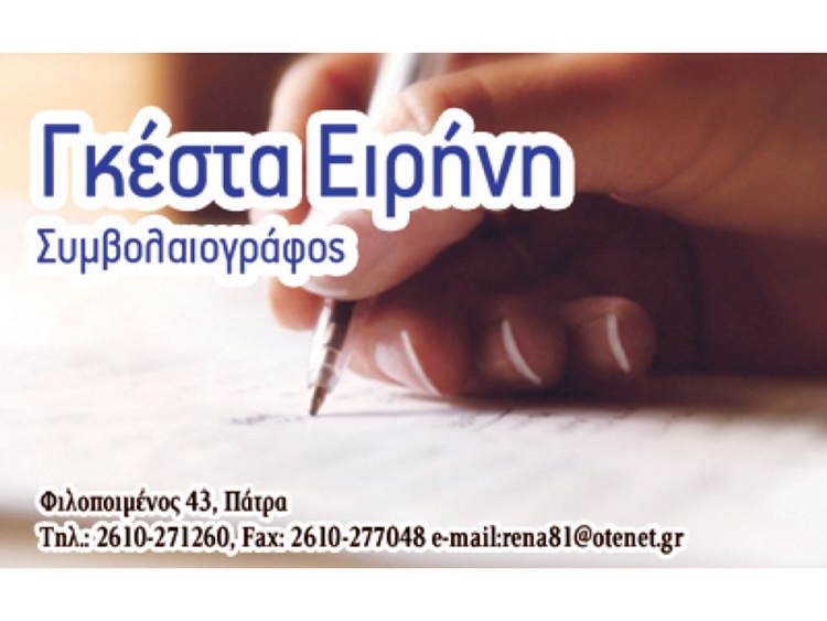 ΣΥΜΒΟΛΑΙΟΓΡΑΦΟΣ ΠΑΤΡΑ | ΣΥΜΒΟΛΑΙΟΓΡΑΦΕΙΟ ΓΚΕΣΤΑ ΕΙΡΗΝΗ