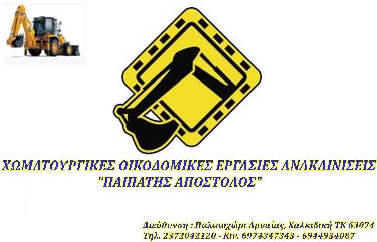 ΧΩΜΑΤΟΥΡΓΙΚΕΣ ΟΙΚΟΔΟΜΙΚΕΣ ΕΡΓΑΣΙΕΣ ΑΝΑΚΑΙΝΙΣΕΙΣ | ΠΑΛΑΙΟΧΩΡΙ ΑΡΝΑΙΑ ΧΑΛΚΙΔΙΚΗ | ΠΑΙΠΑΤΗΣ ΑΠΟΣΤΟΛΟΣ